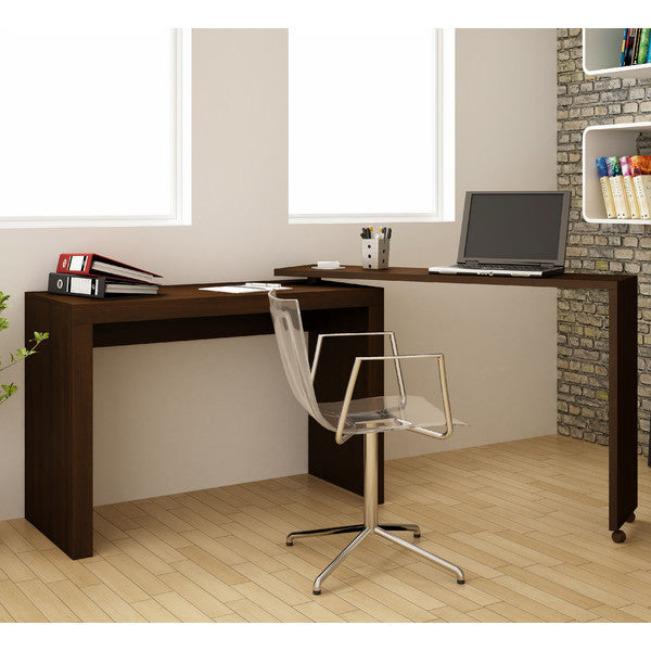 The Calabria Nested Desk is known for its unique and functional design. Have the desk nested or swivel the desk into an L- Shape while working to gain extra table space. Includes 2 casters to easily move and swivel the desk into the shape and direction of your choice. Create a cozy work environment for yourself with the Calabria Nested Desk. Ideal for your home office, living room and kid’s room. Made of high quality MDP with beautiful color options.