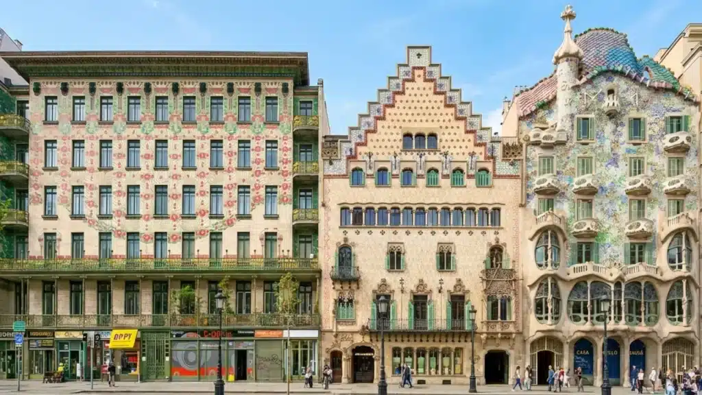 Crafted by Lluís Domènech i Montaner, this concert hall celebrates the style through its use of light and decoration. Its exterior blends mosaics, arches, and sculptural elements inspired by music and Catalan culture.